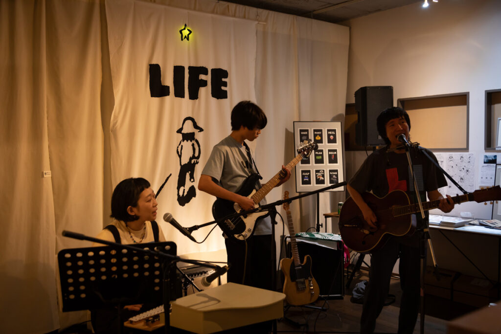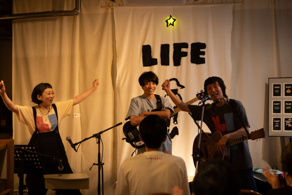 クロージングライブは、大分・別府からnëlcöのヒライマサヤさん、ヒライユミコさん、ひらいじんたさんが駆けつけてくれて、3人でのライブと、ヒライマサヤさんソロでのライブを届けてくれました。
