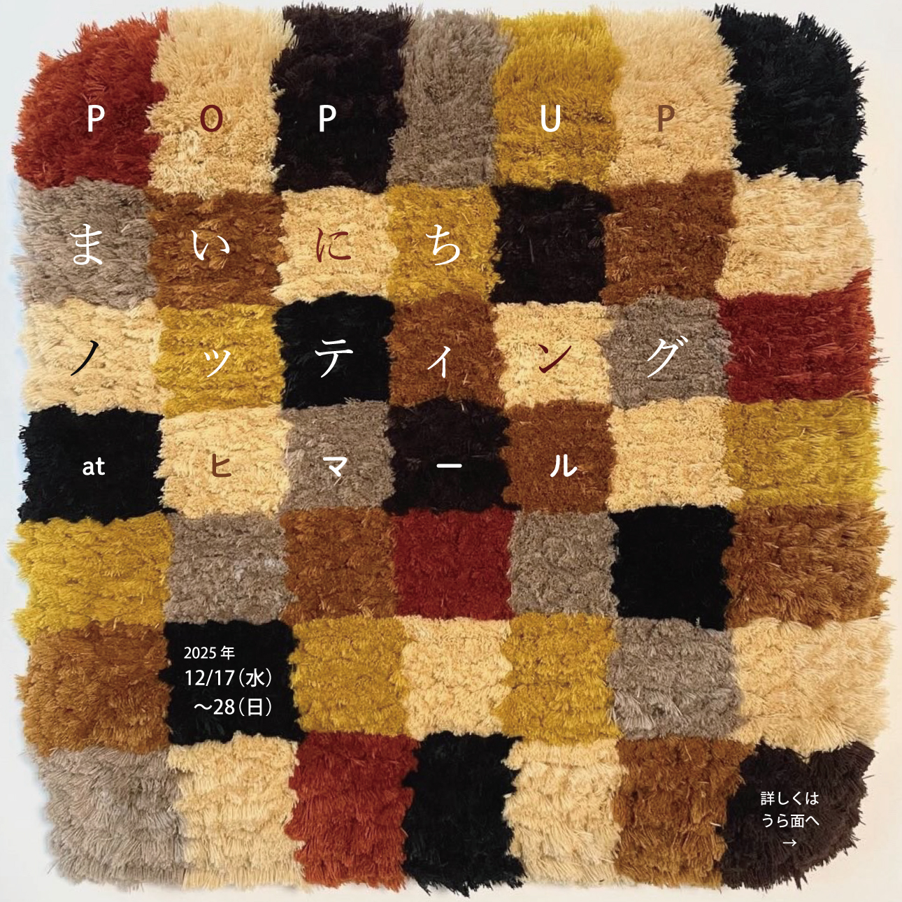 POP UPまいにちノッティング 2025年12月17日(水)〜28日(日)会期中無休月〜水曜 14:00-20:00/日曜 12:00-17:00 今年もこの季節に、まいにちノッティング/ササムライクコさんがつくるウー […]